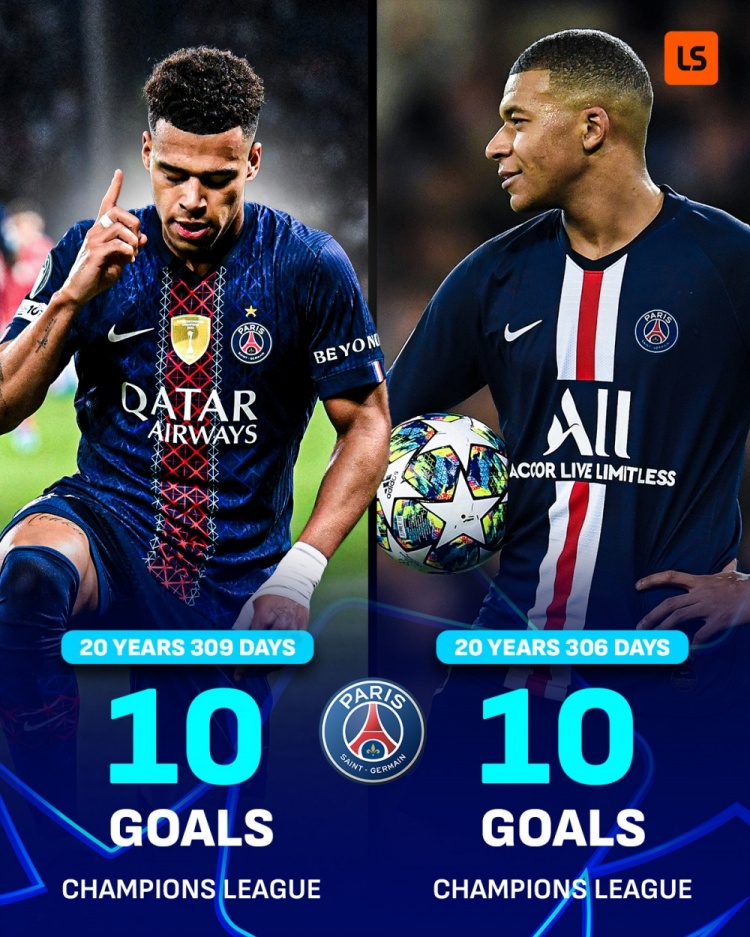 • 杜埃在欧冠已为巴黎打进10球,是姆巴佩后做到这一点的最年轻球员