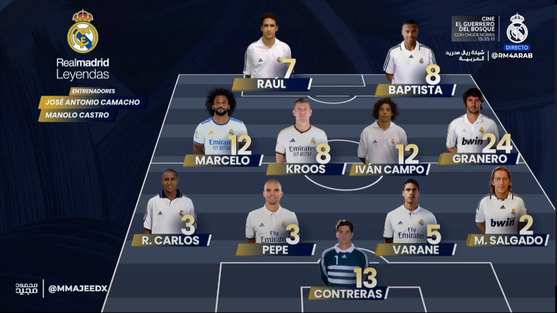 超豪华皇马传奇赛首发:劳尔&克罗斯领衔 卡洛斯+马塞洛左路