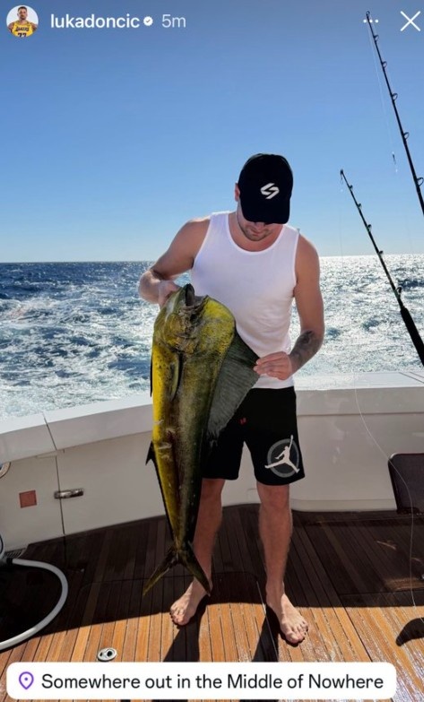 里夫斯能钓到这么大的鱼吗?东契奇:肯定不行呀 那鱼比他都大