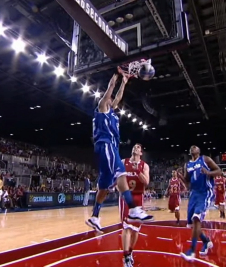 • 这弹跳什么水平?在2012年NBA名人赛中J.Cole完成双手空接扣篮